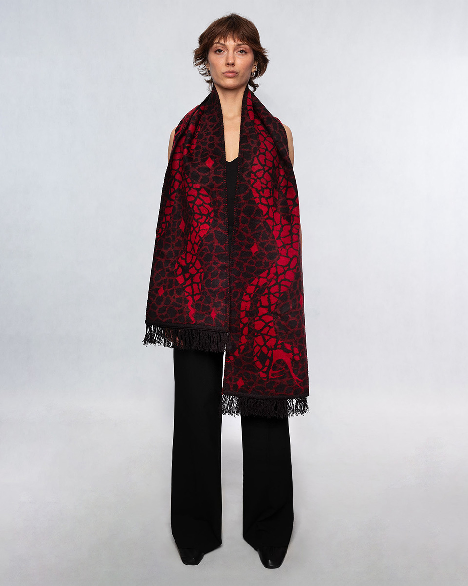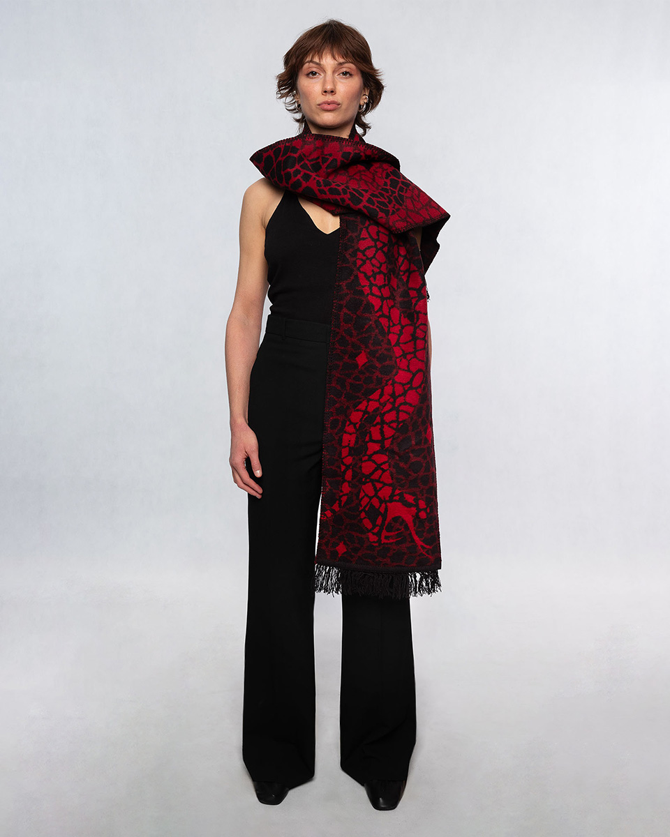 Bazą jest tkanina żakardowa – czyli tkany na krośnie materiał składający się z odpowiednio dobranych splotów. Wytkany wzór zapewnia większą trwałość i sprawia, że nasze szaliki mają duszę.