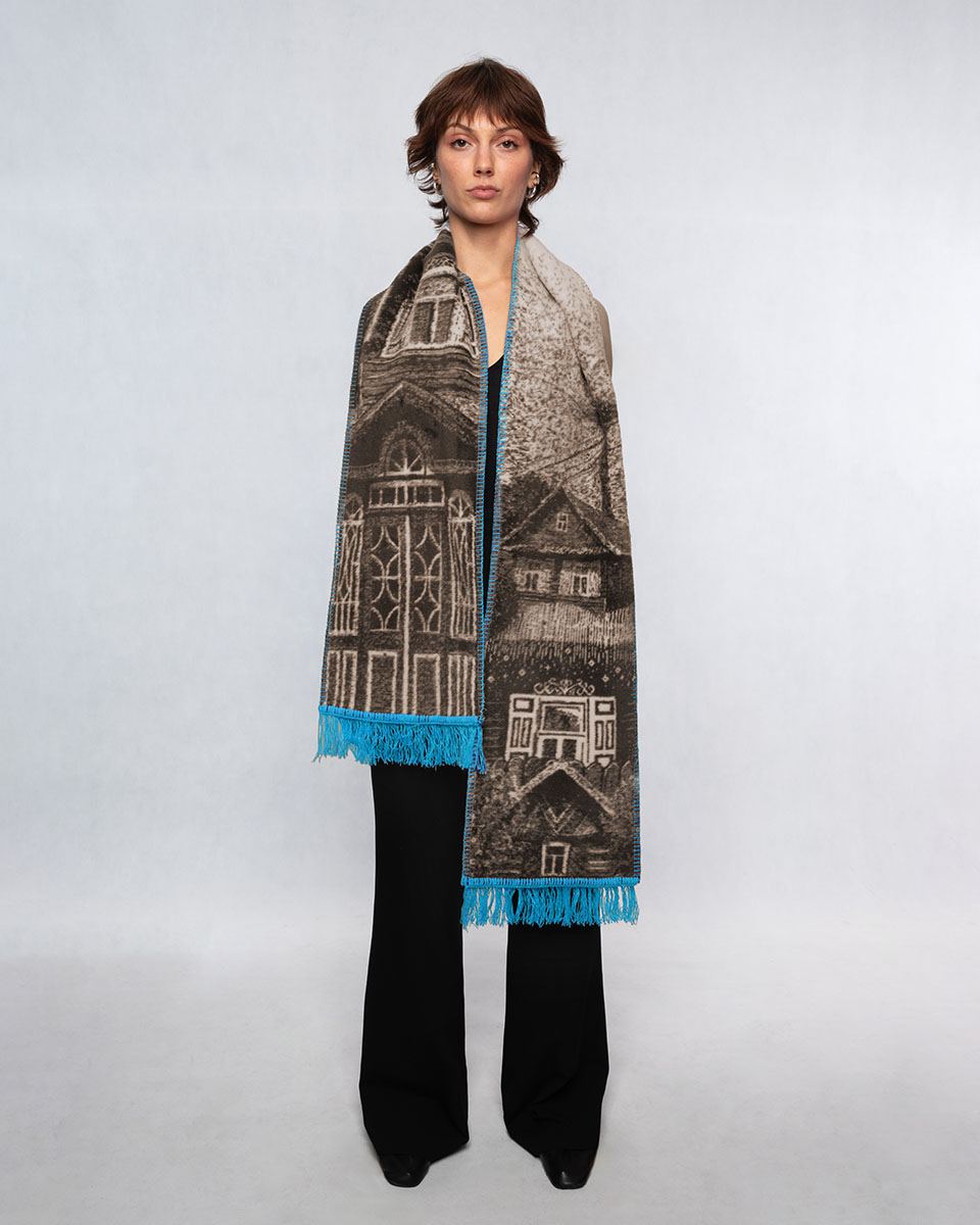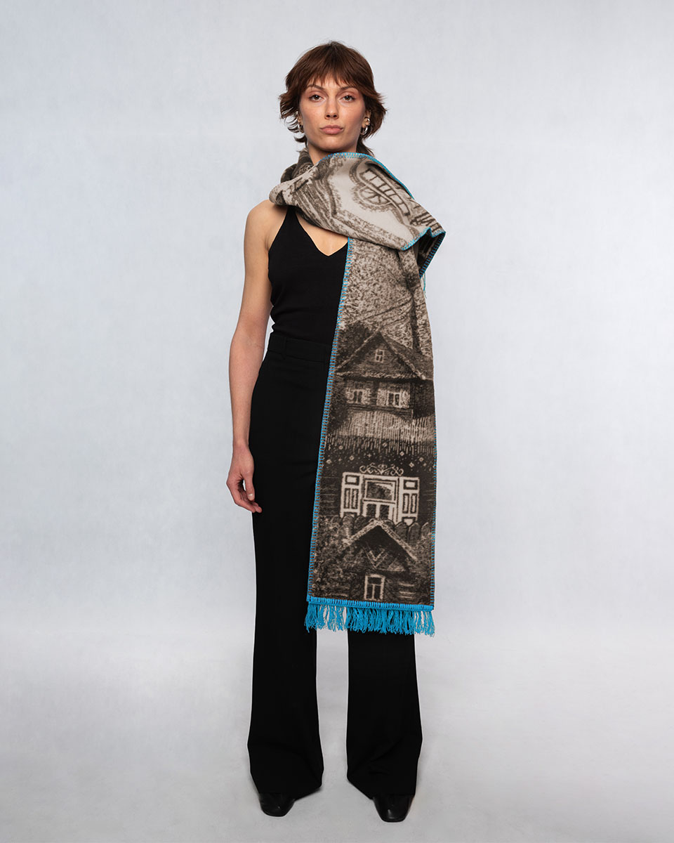 Bazą jest tkanina żakardowa – czyli tkany na krośnie materiał składający się z odpowiednio dobranych splotów. Wytkany wzór zapewnia większą trwałość i sprawia, że nasze szaliki mają duszę.