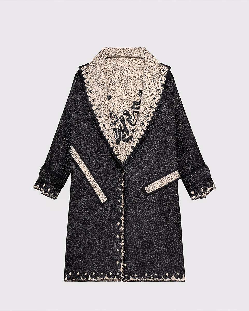 Czarny płaszcz żakardowy “Meduza” to kwintesencja uwodzenia i siły. Jego niepowtarzalny design przyciąga spojrzenia niczym zaklęcie, zamieniając je w zastygłe w zachwycie kamienie. W tym płaszczu stajesz się współczesną Meduzą – władczą, pewną siebie i absolutnie niezapomnianą.