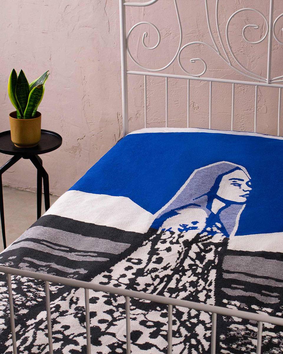 Bazą jest tkanina żakardowa – czyli tkany na krośnie materiał składający się z odpowiednio dobranych splotów. Wytkany wzór zapewnia większą trwałość i sprawia, że nasze pledy mają duszę.