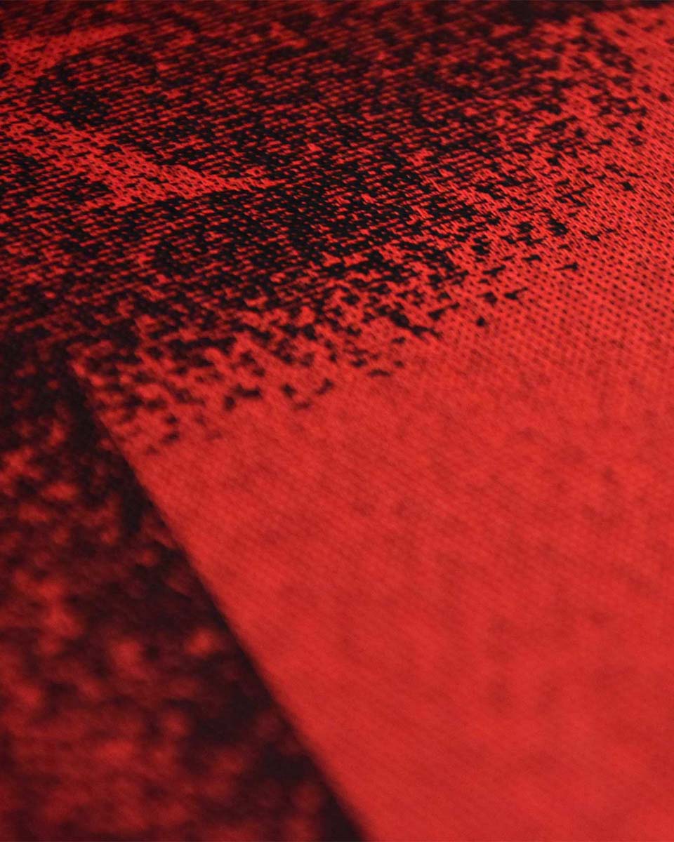 Plakat jest symulacją tkaniny żakardowej, stworzonej na splotach prawdziwej przędzy.