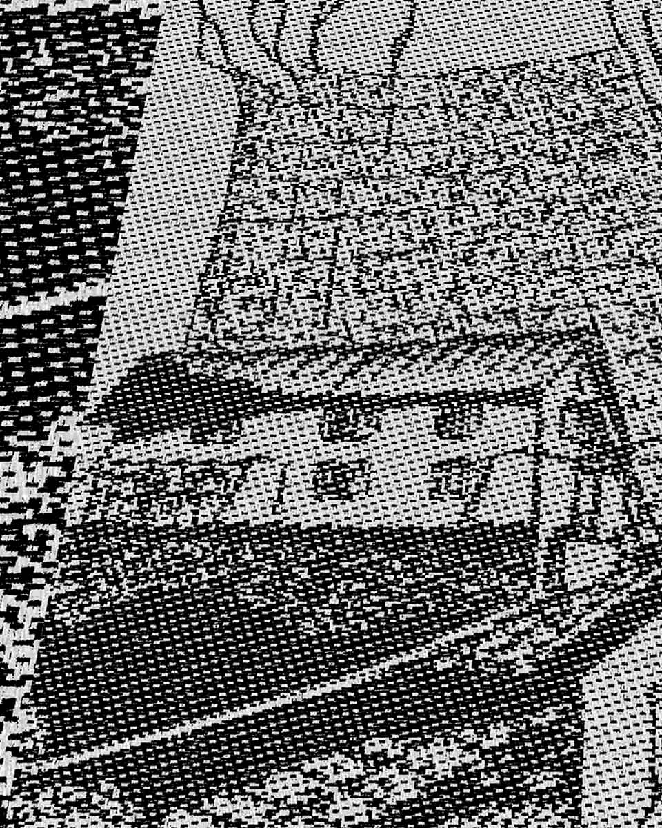 Plakat jest symulacją tkaniny żakardowej, stworzonej na splotach prawdziwej przędzy.