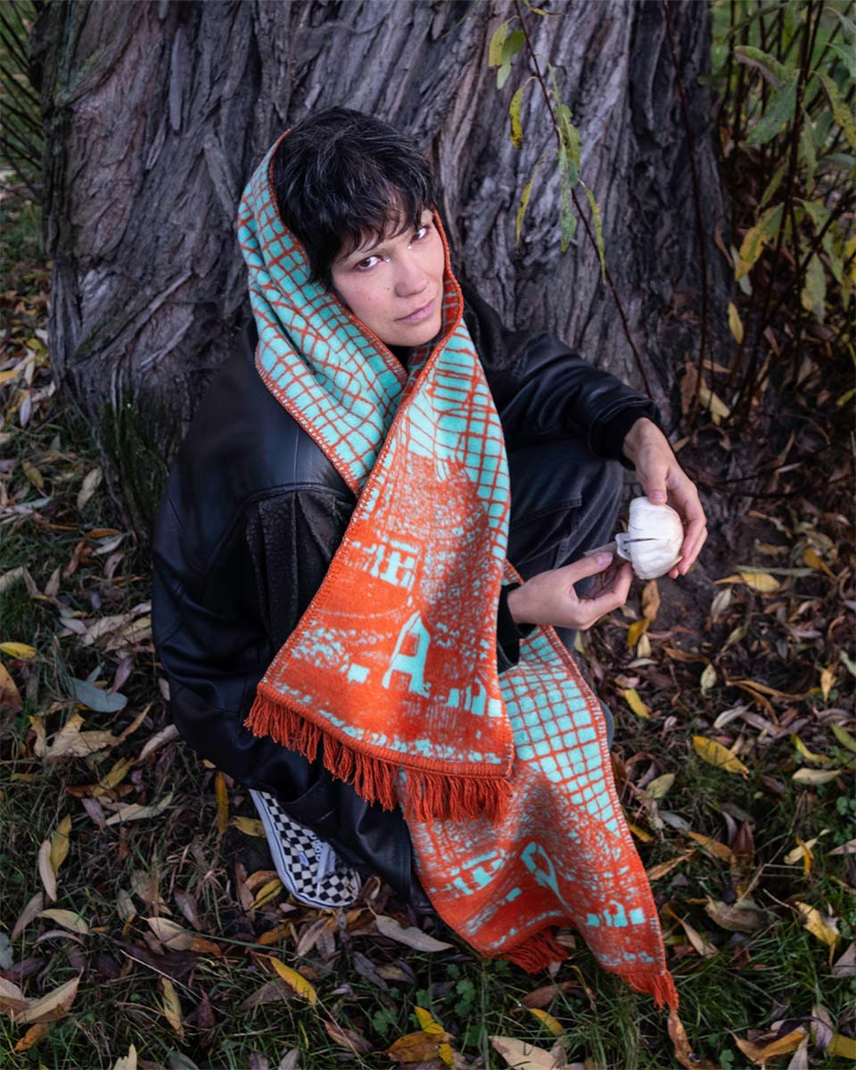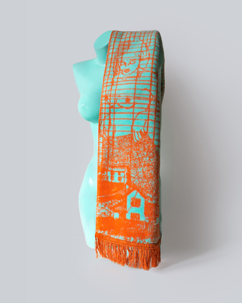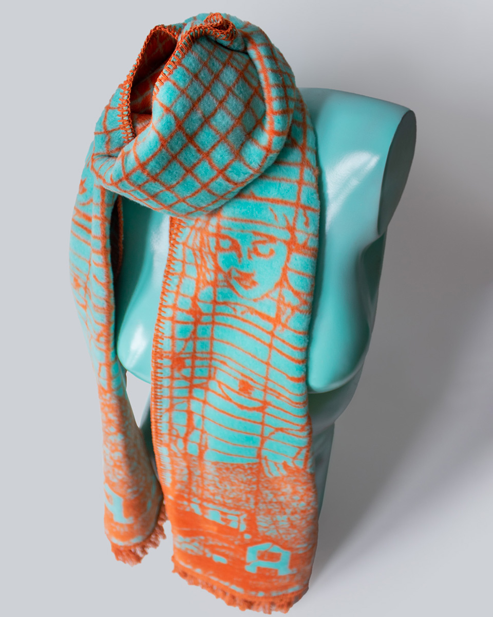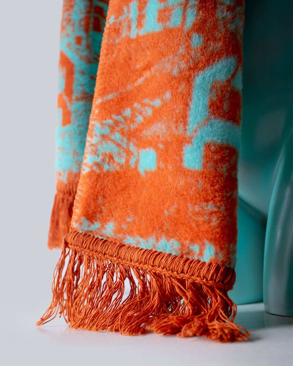 Bazą jest tkanina żakardowa – czyli tkany na krośnie materiał składający się z odpowiednio dobranych splotów. Wytkany wzór zapewnia większą trwałość i sprawia, że nasze szaliki mają duszę.