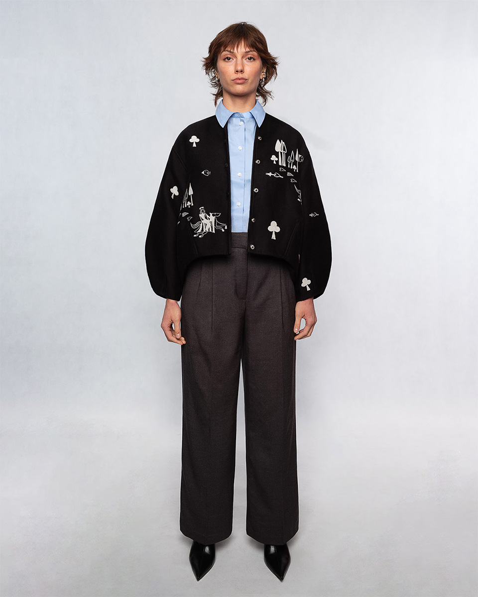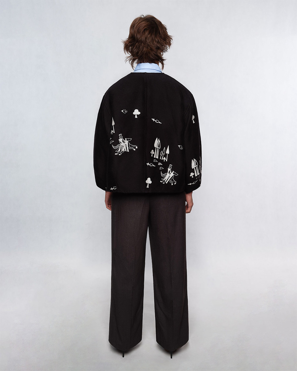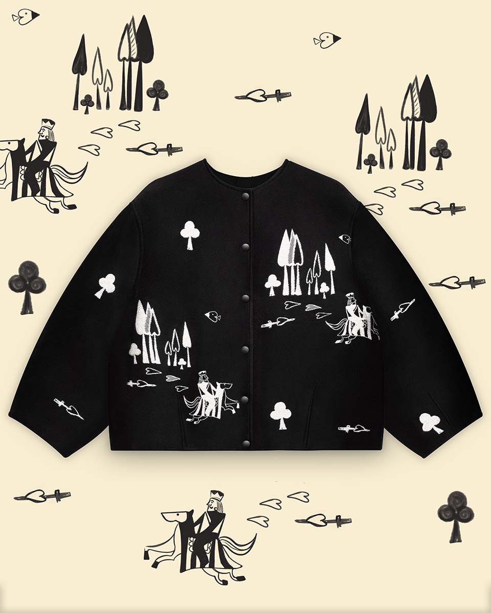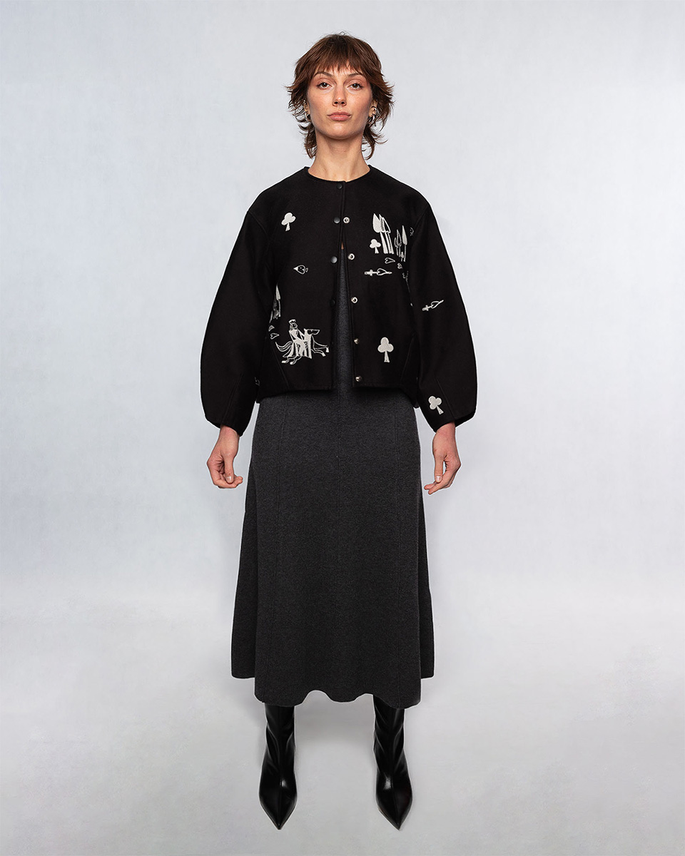 Żakardowa kurtka Belgijka DAMA SERCA powstała w efekcie twórczego spotkania z marką Aurelia & Zwei Frauen. Opowiada historię o walecznym rycerzu, który przemierza rozległe krainy, by odnaleźć swoją Damę Serca. Czy ta historia skończy się happy endem – tego nie wiemy. Jedno jest pewne – ten model pokochają wszystkie fanki unikatowych ubrań.