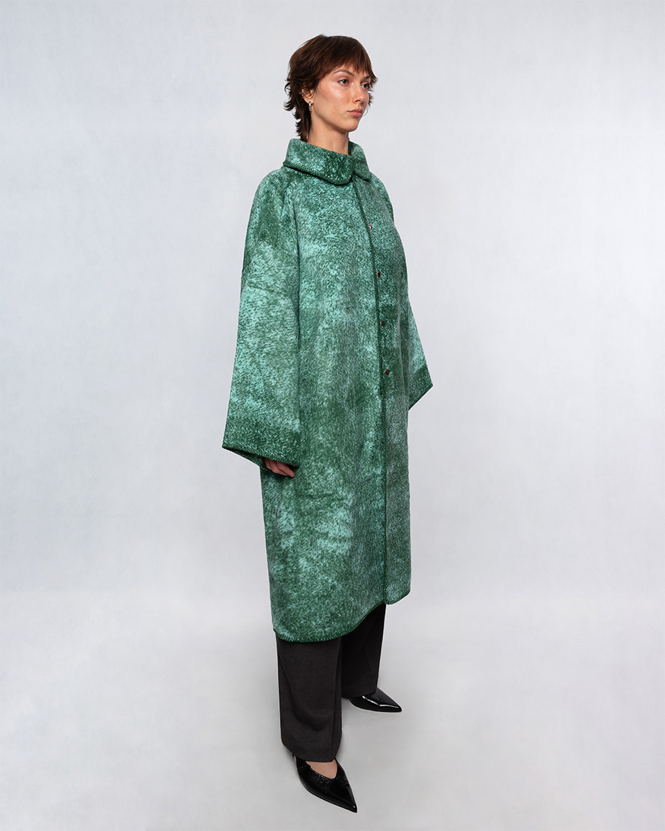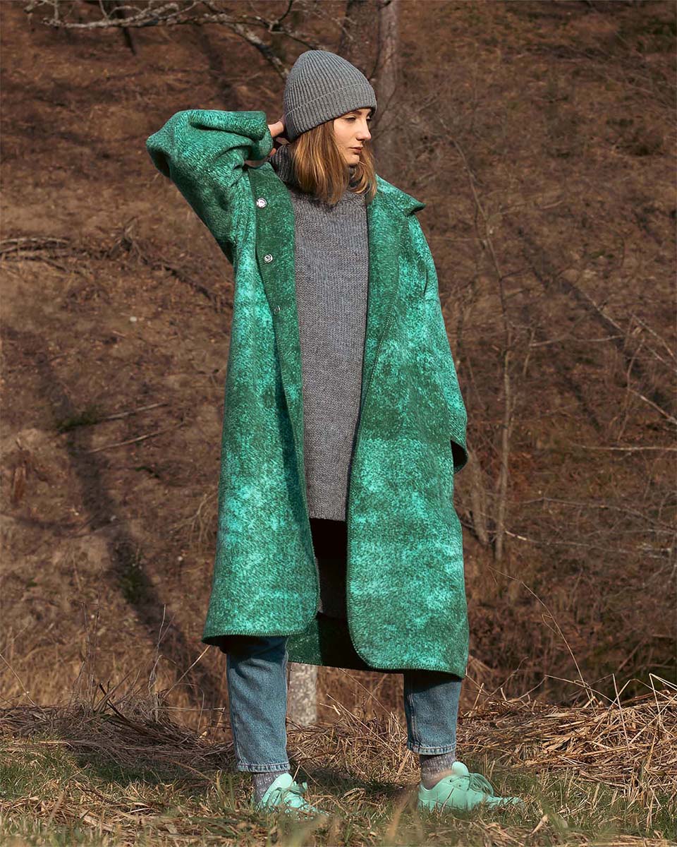 Gdziekolwiek jesteś – nie musisz wychodzić spod zielonego koca. Ta idea przyświecała nam podczas tworzenia Kocomona, czyli miękkiego płaszcza o kroju kimona.