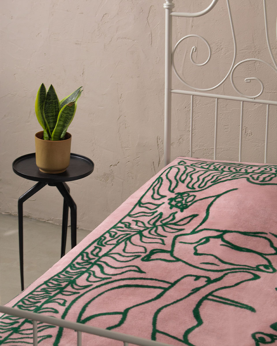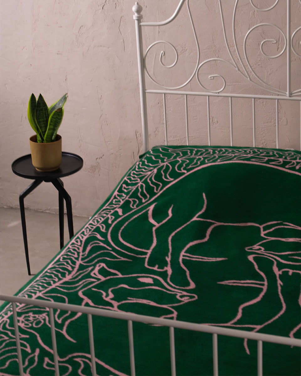 Bazą jest tkanina żakardowa – czyli tkany na krośnie materiał składający się z odpowiednio dobranych splotów. Wytkany wzór zapewnia większą trwałość i sprawia, że nasze koce mają duszę.